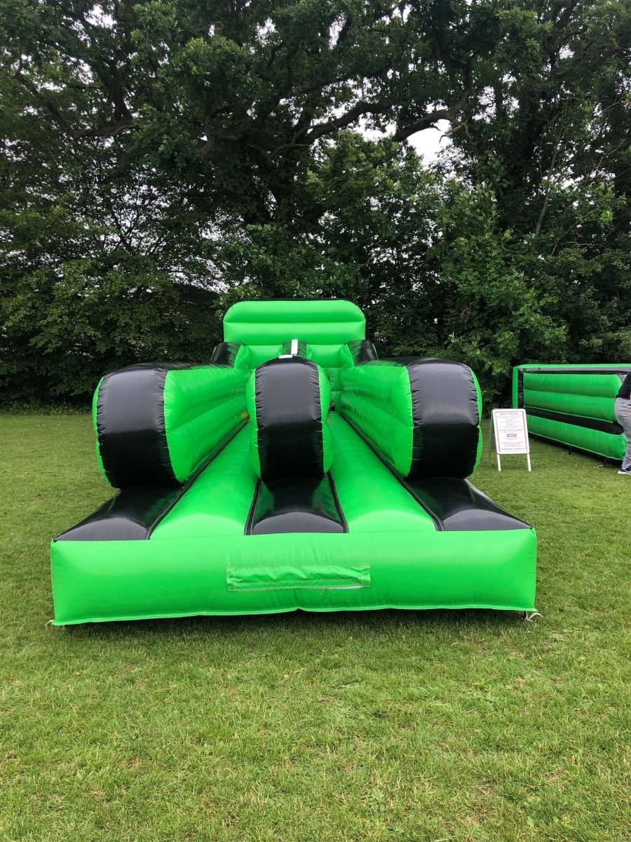 With our matching green and black Bungee Run and Gladiatour Joust get competitive and fight to decide a winner!!