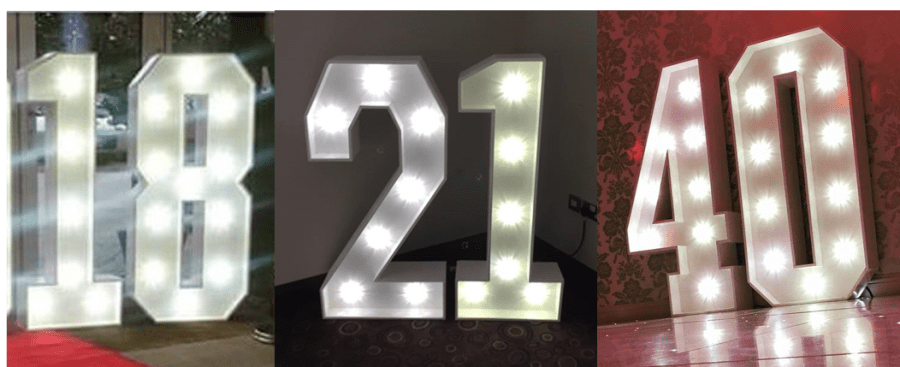 16, 18, 21, 30, 40, 50, 60, 70 Illuminated Numbers