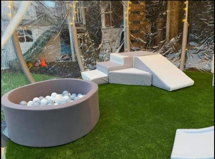 This beautiful white and grey soft play set perfect for any Christening or Wedding party contains 12 pieces of soft play, a softplay slide, a normal slide, and a white ballpit filled with grey and white balls! This soft play can only go inside a house, hall, wedding venue or enclosed marquee, not outside on grass due to the white colour.