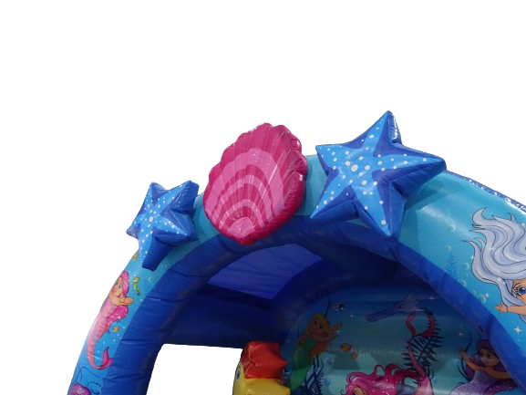 It is a great bouncy castle with rounded corners, netted sides, and three-dimensional biff-bashes. On top of the arch, you find stunning 3D elements to provide an even greater wow factor. It is lightweight, has a fully enclosed roof and excellent visibility for parents. The colours are vibrant and full of life. Everything about it is breath-taking We have under the sea ball pit and soft play that you can add to this castle to make a package. Or take a look at all our Under the Sea range for you to mix and match.