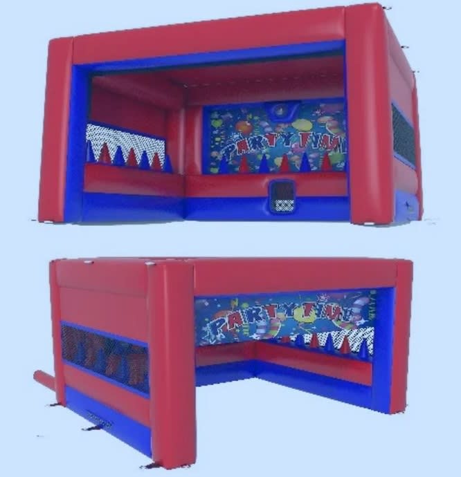 The Soft Play Tent surround with air jugglers is perfect for sunny or showery days to protect your children while they play outside with our soft play hire.