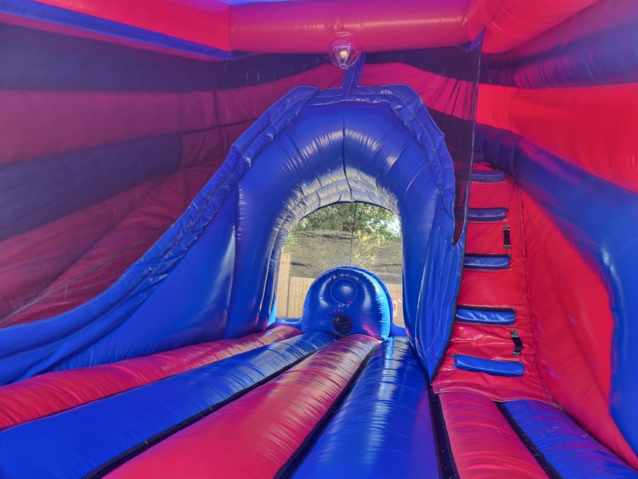 This unique unit has a large bouncing area coupled with, would you believe it, a curved 10 foot platform slide.