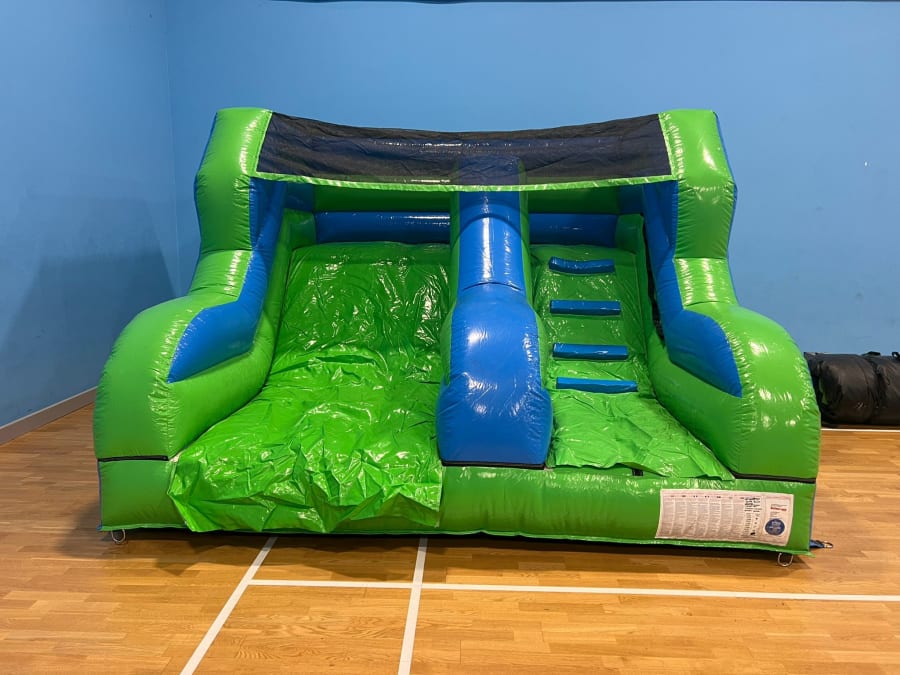 Our Junior Slide Blue and Green is lightweight and portable, making it quick and easy to transport and for us to set up in any location. It's perfect for indoor use in halls or outdoor use in back gardens. With its compact size, it can fit into most spaces without taking up too much room. Plus, it comes with a safety test so you know all the checks have been undertaken.