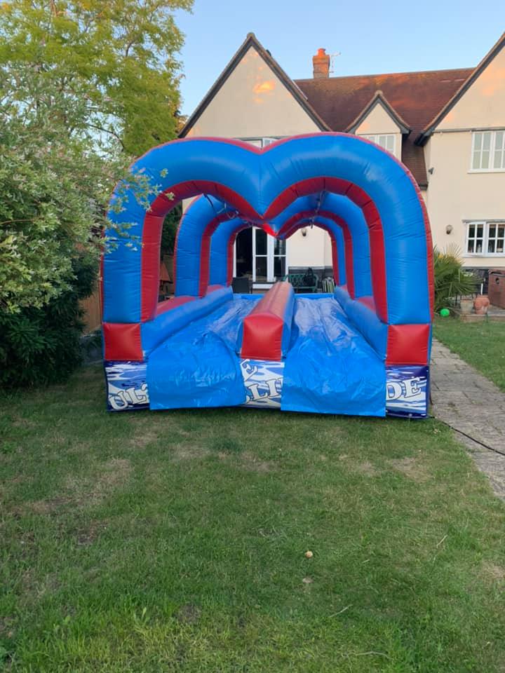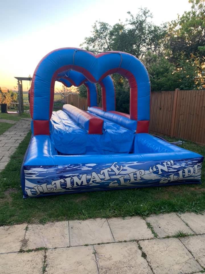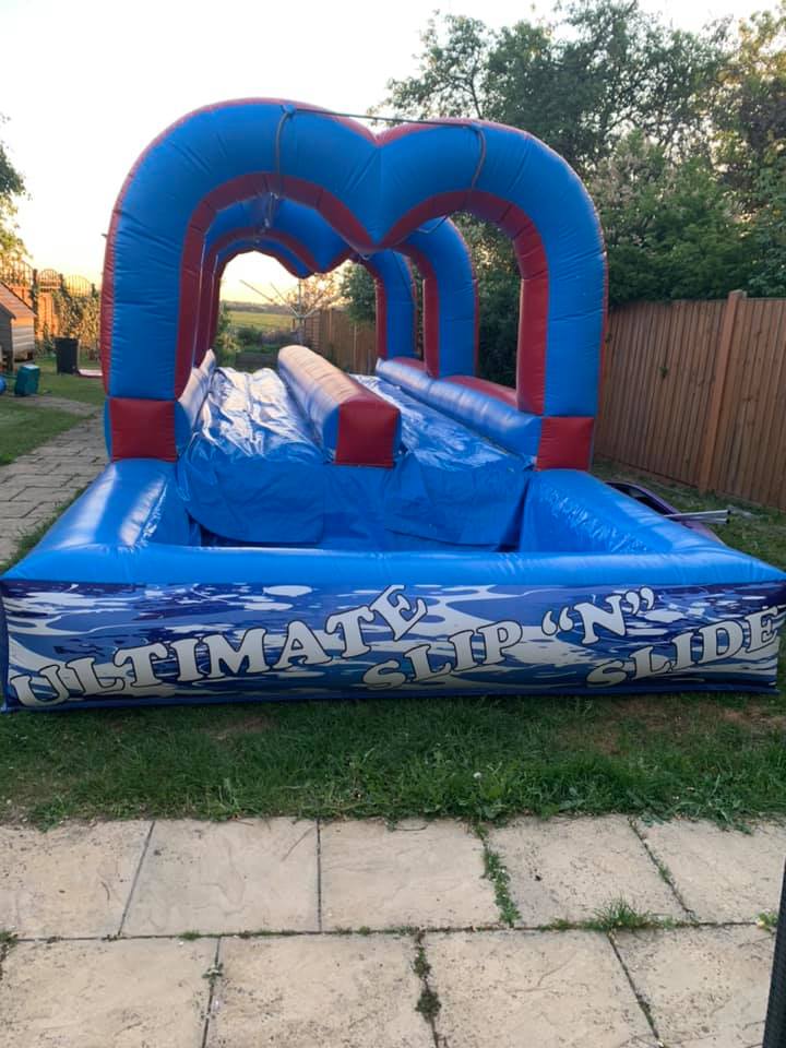 25’ inflatable SLIP N SLIDE available for back garden hire and events.