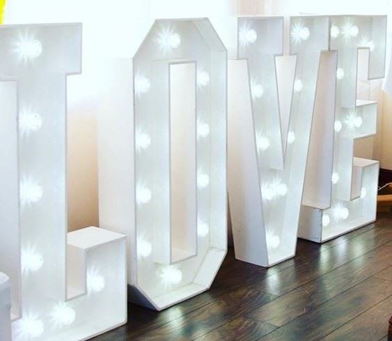 2ft LOVE light up letters, handcrafted in white wood with white led bulbs.