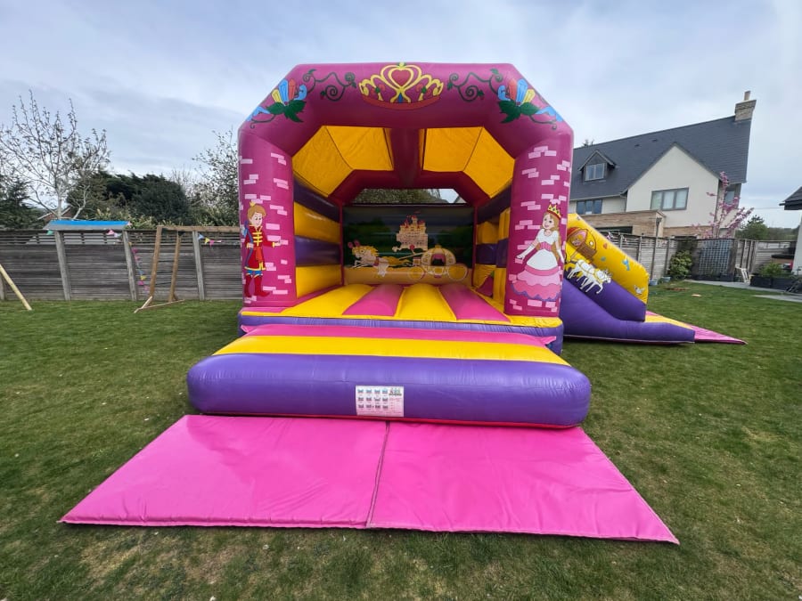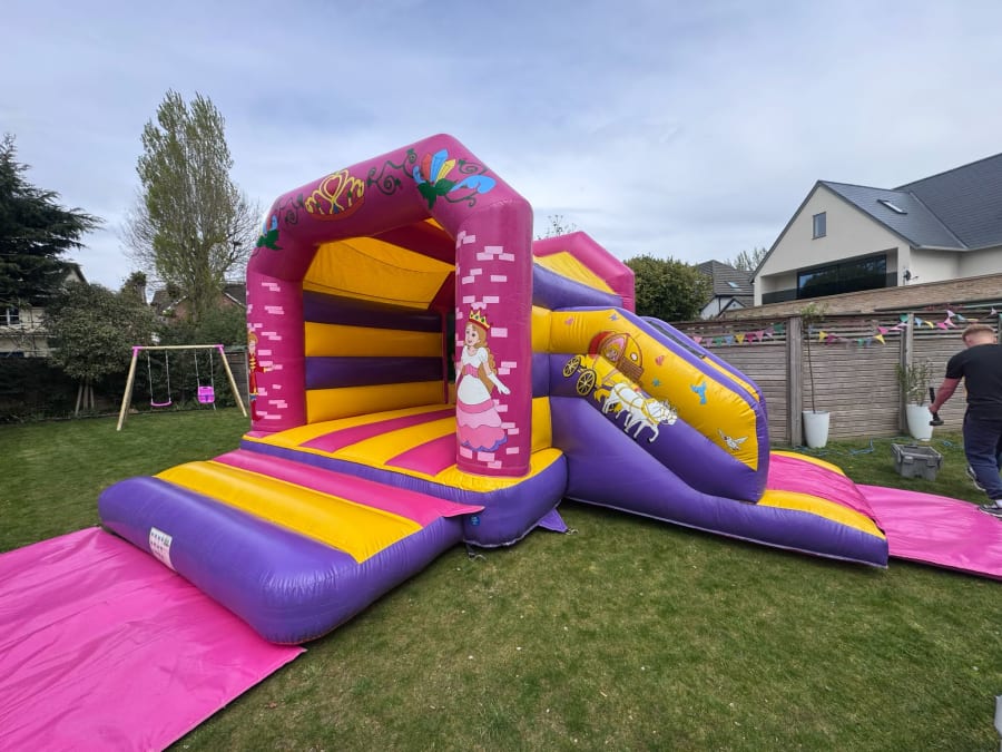 Transform your back garden into a fairytale wonderland with our enchanting Pink Princess Side Slide. Perfect for little princesses and their royal friends, this bouncy castle brings a burst of joy and excitement to any gathering. Designed with delightful pink and purple hues and charming princess motifs, it’s the ultimate addition to your child's special day! 🎈👑