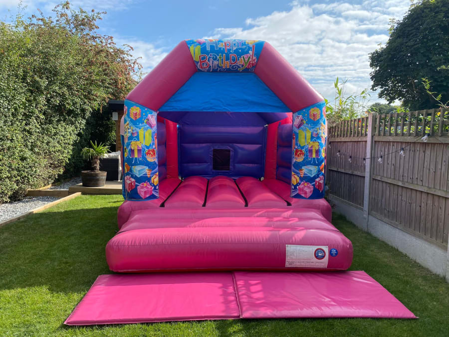 Welcome to Evo Inflatables, the best place to find bouncy castle and entertainment equipment hire in Essex! Our pink and blue gloss bouncy castle is perfect for both halls and outdoor use too with it's shower cover and is sure to provide hours of fun for children of all ages.