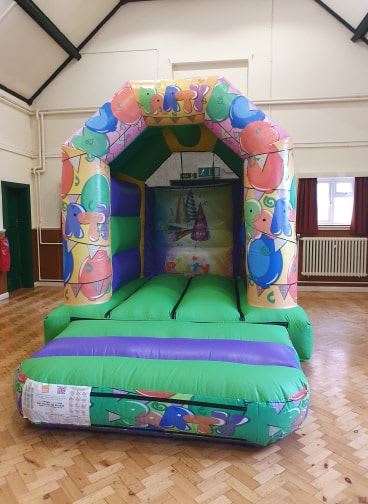 Such a cute little castle for toddlers in a garden or a hall. Jolly colourful balloons all over it perfect for a party!