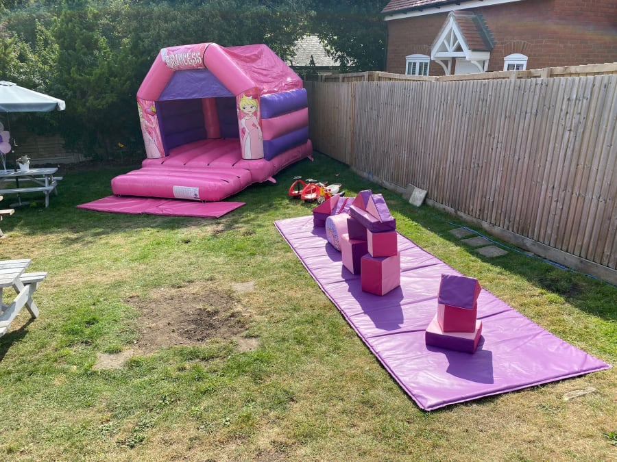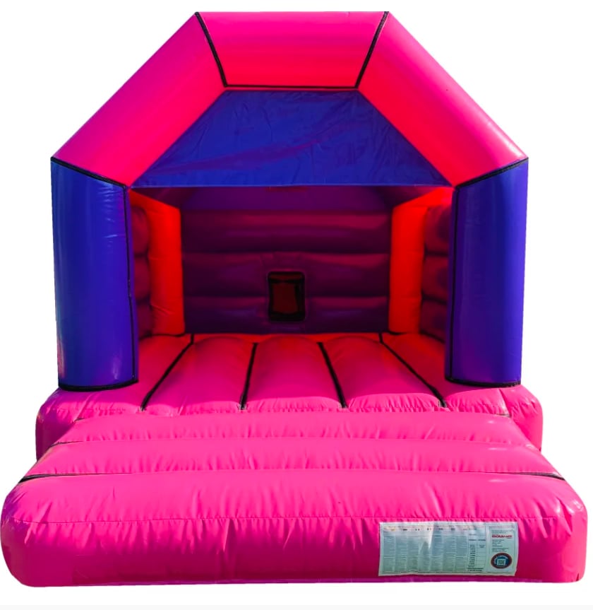 This bouncy castle is designed with your back garden in mind, featuring a shower cover/sun shade to ensure that you can continue to play even if the weather turns. It's vivid pink and purple colours make it a perfect addition to any party or event, and it can be easily customised to suit your party's theme with our selectable panels. Avengers, Circus, Dinosaurs, Ponies, Princesses or Superheroes are just a few themes we have among the huge variety. At Evo we also have matching soft play or games to suit your theme.