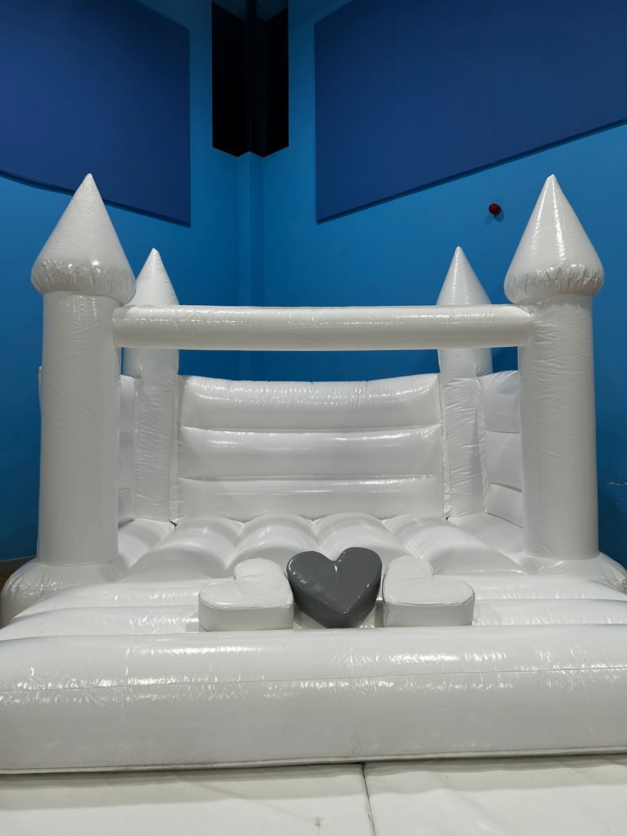 A smaller version of our white wedding castle suitable for children only (maybe the bride and groom for a photo but no major bouncing pls!). Takes about 6 children at a time. Perfect for indoor use.
