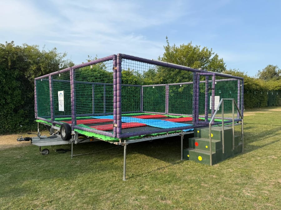 Looking to add a bouncy twist to your next event? Our Trampoline Trailer availabel to hire in Essex, Suffolk, London, Cambridge and Herts is the perfect attraction for any party, festival, or community gathering. Featuring a vibrant and colourful setup, this 6 bed trampoline trailer brings high-energy fun and endless smiles to children aged 2 to 11. With safety, enjoyment, and convenience at the heart of our offering, we ensure your event is truly memorable!