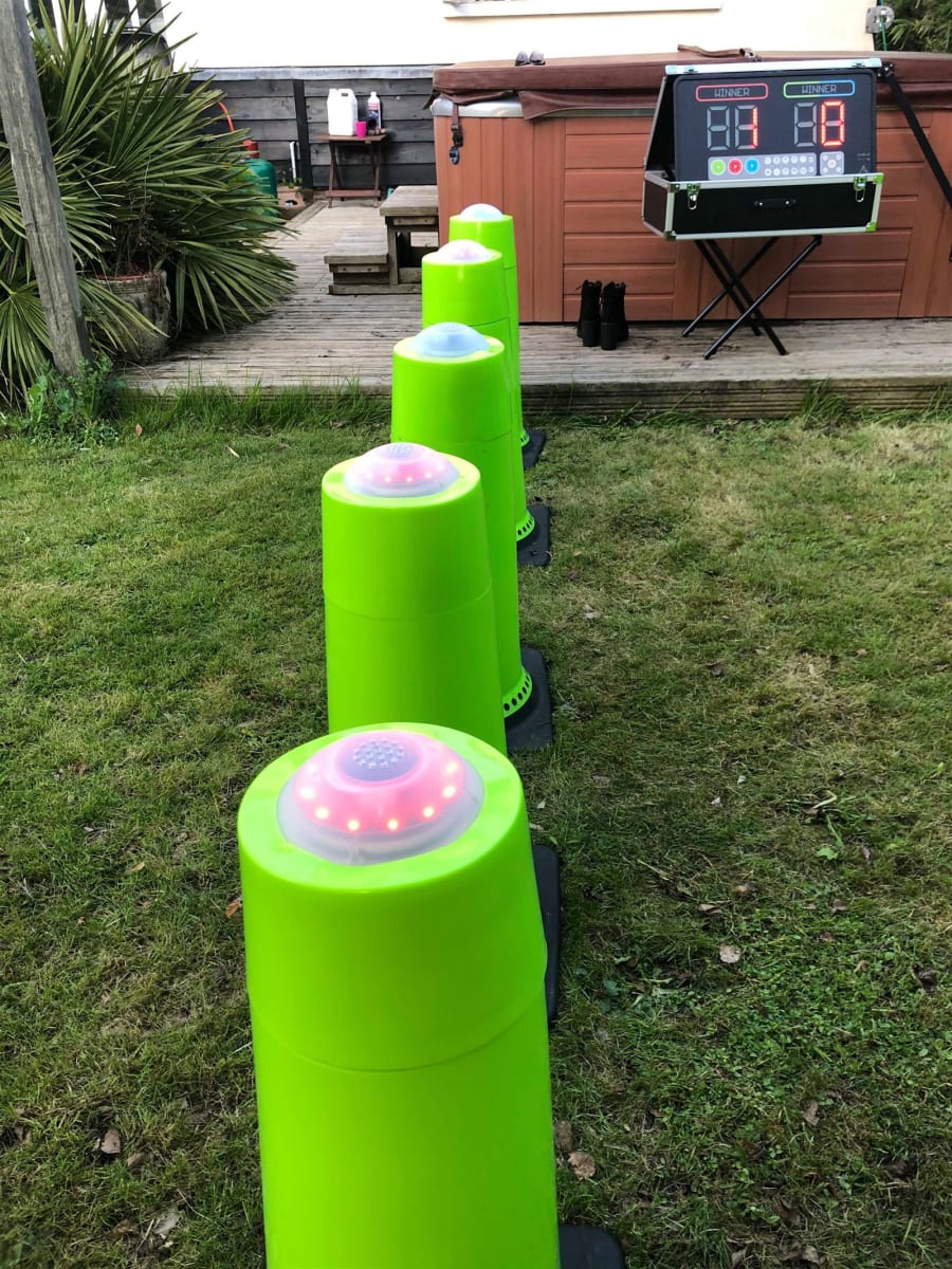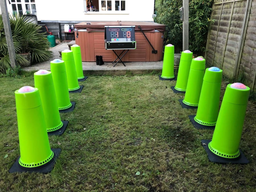 It's like an electonic version of Whack A Mole, or a giant version of ankids memory game, it's a race to push the button first.