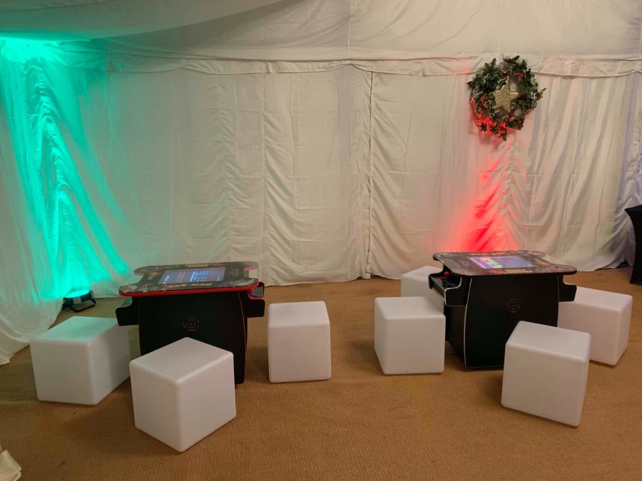 This machine is cocktail table style and comes free with either rubiks cube seats or led light up cubes to sit on. Takes you back to the 80s pub days heh!