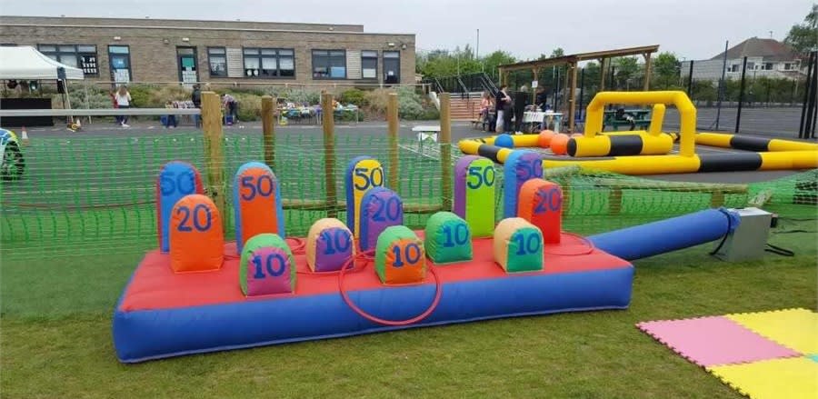 Inflatable giant hoopla comes with wooden rings or hoops - perfect for school and village fetes or fun at your party or wedding. Count up the points and have a competition!