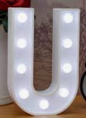 4ft 'U' Light up letter, handcrafted in white wood with white led bulbs. Great additional venue décor for your wedding or event. This letter is a great for initials or names.