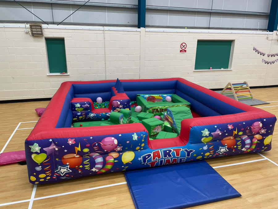 Deluxe partytime softplay surround with built in ballpit and air juggler. Add in any soft play you like. Click here to look at the soft play options!