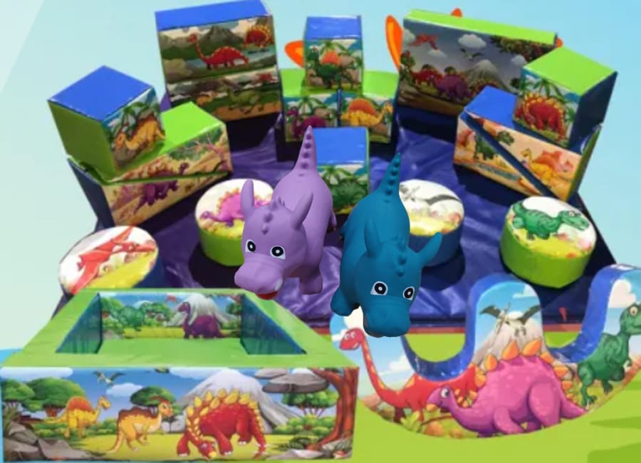 Soft play in a dino theme - perfect for a house party or small hall or area of a hall party. As with a ballpit then a £20 ballpit fee is payable but returnable if all the balls are back in the ballpit at the end of the party when we come to collect! Make it a game! 17 pieces of soft play, bean, rocker ball pit and two dinosaur bouncers.