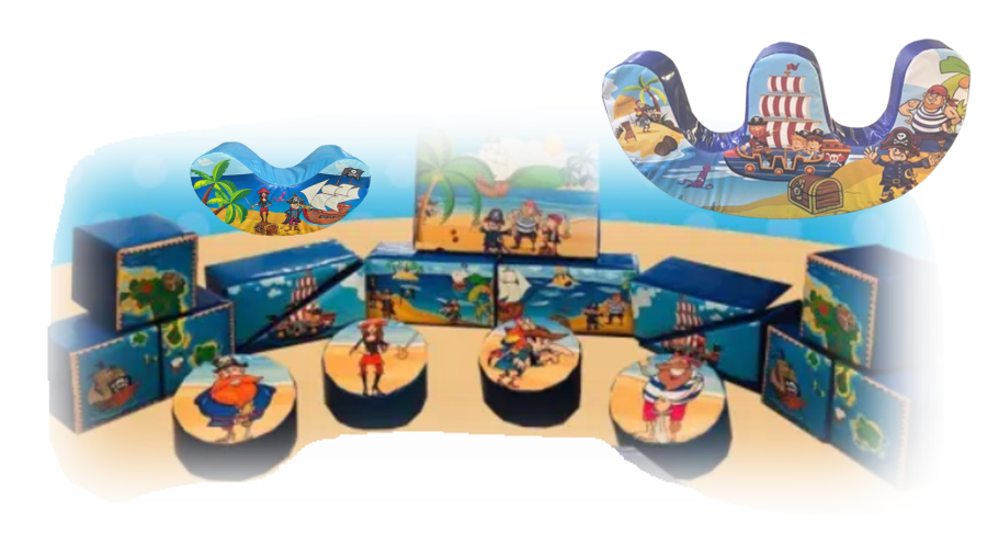 17 pieces of soft play, a jelly bean, a rocker and mats.