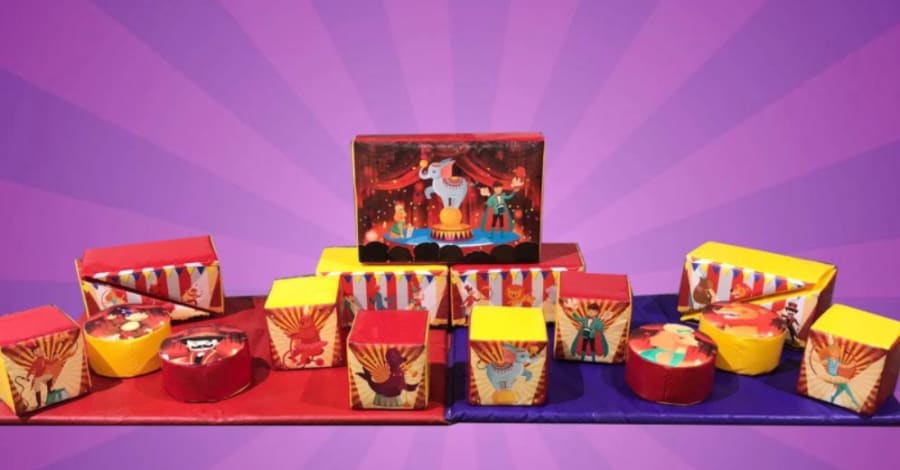 17 pieces of soft play, a jelly bean, a rocker and mats.