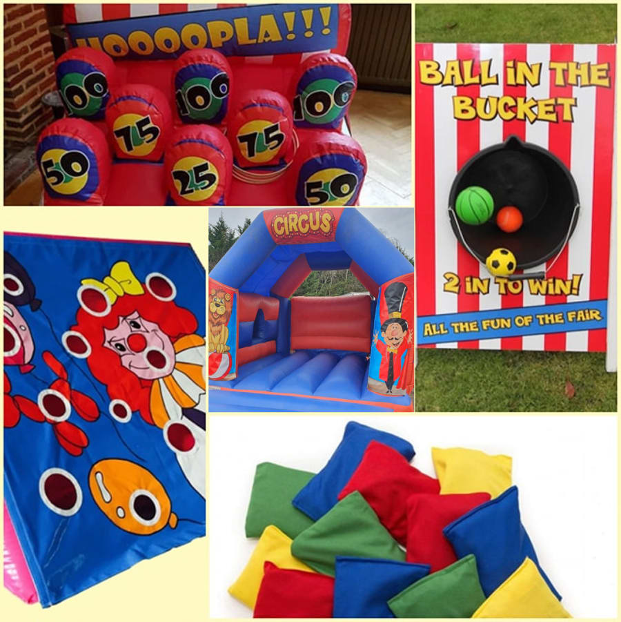 You get the circus bouncy castle, circus chipper with either golf clubs (metal or plastic) and golf balls (plastic) or beanbags, hoopla with wooden hoops and ball in the bucket side stall all for £150 instead of £225 if booked separately! You'd be a clown not to!