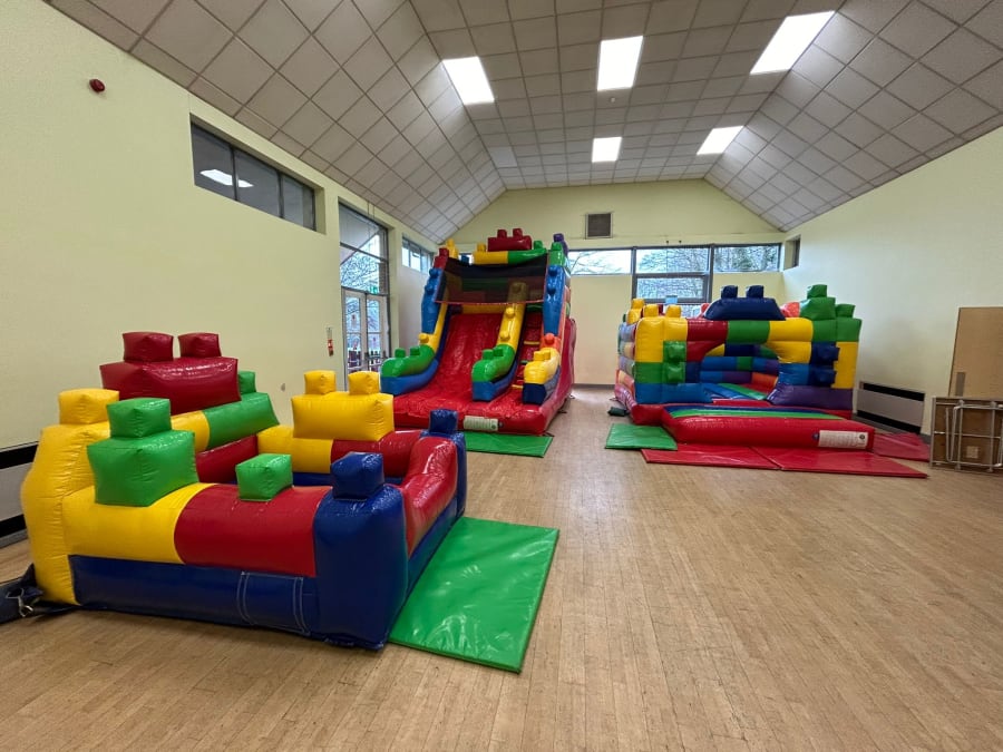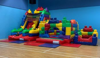 Wow how cool is this for all those lego fans out there - the whole shabang - a slide, a bouncy castle and a ballpit for the little brothers and sisters to play in!