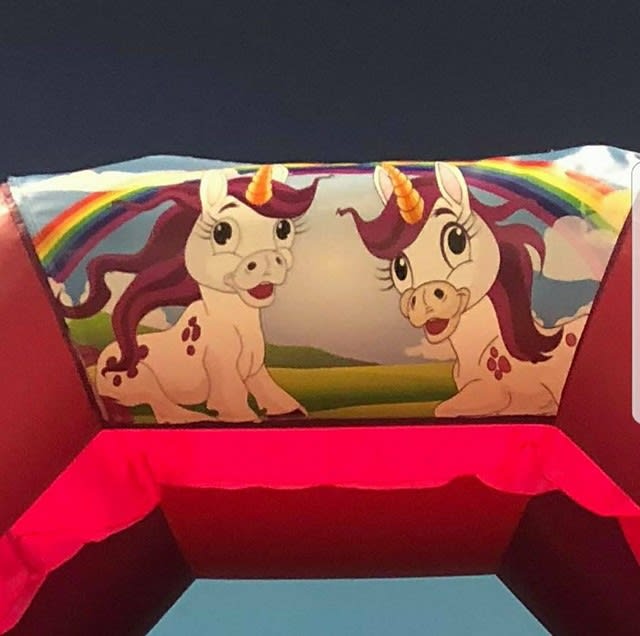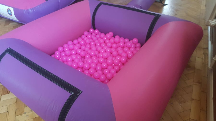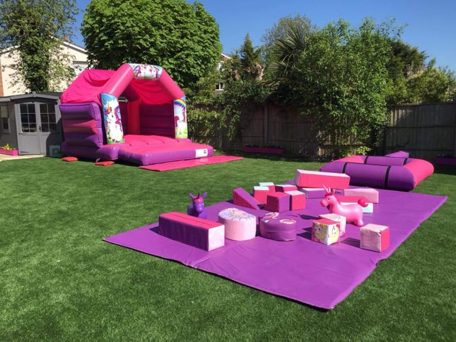 You can hire the unicorn bouncy castle and mats with our premium selection of soft play and our pink and purple inflatable ballpit all for an amazing package price.