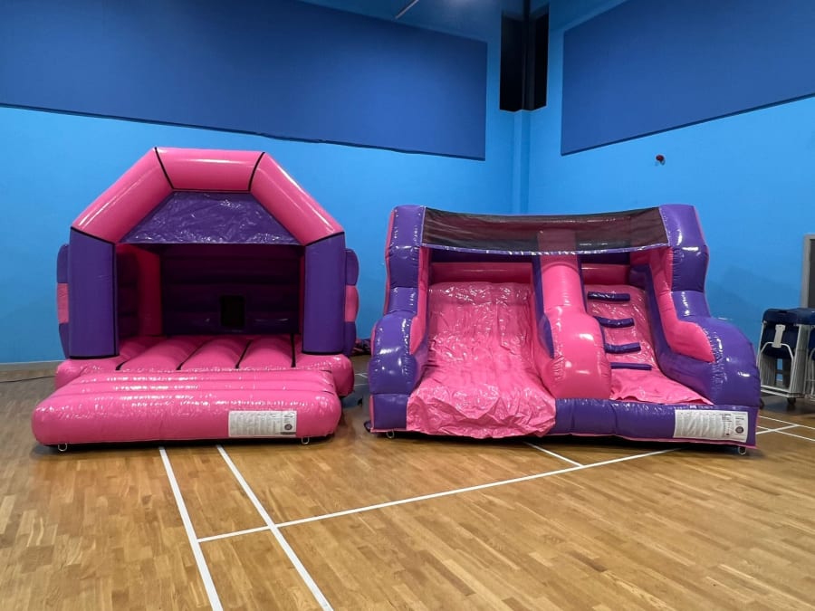 Discover the Ultimate Fun with Our Junior Slide/Castle Package Pink/Purple